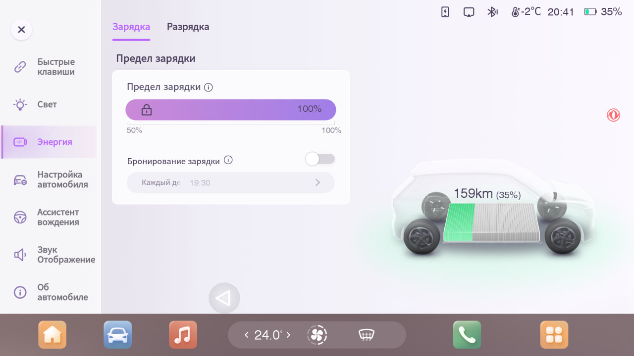 К примеру, выбор третьей с начала списка опции (как на фото выше) добавляет в ГУ возможность выбора русского языка в настройках ГУ и включает опцию управления зарядом батареи по расписанию.