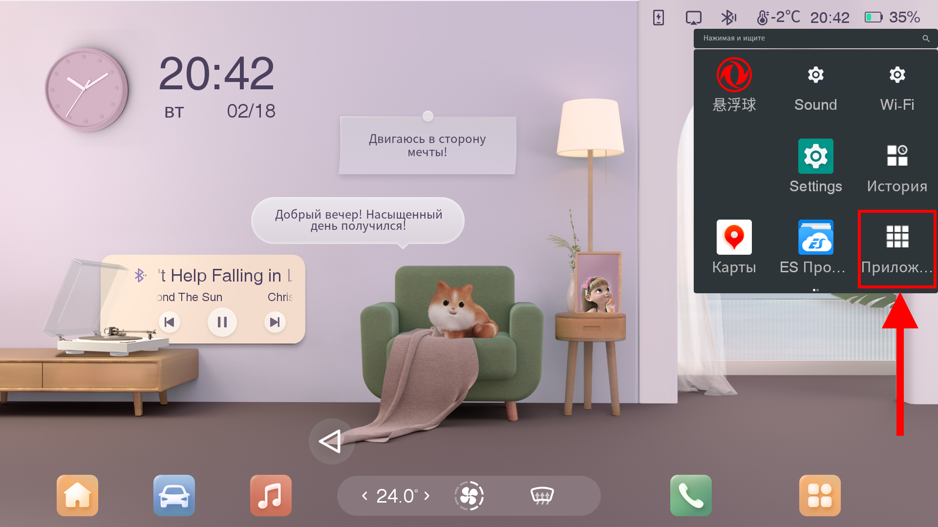 После того, как вы сделаете первичную настройку, иконка-шарик с лого Dongfeng появится на экране планшета и будет отображаться поверх всех приложений.