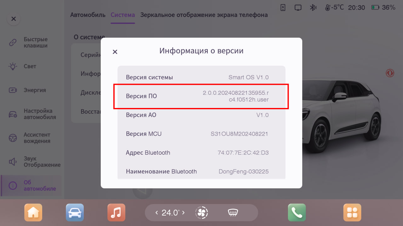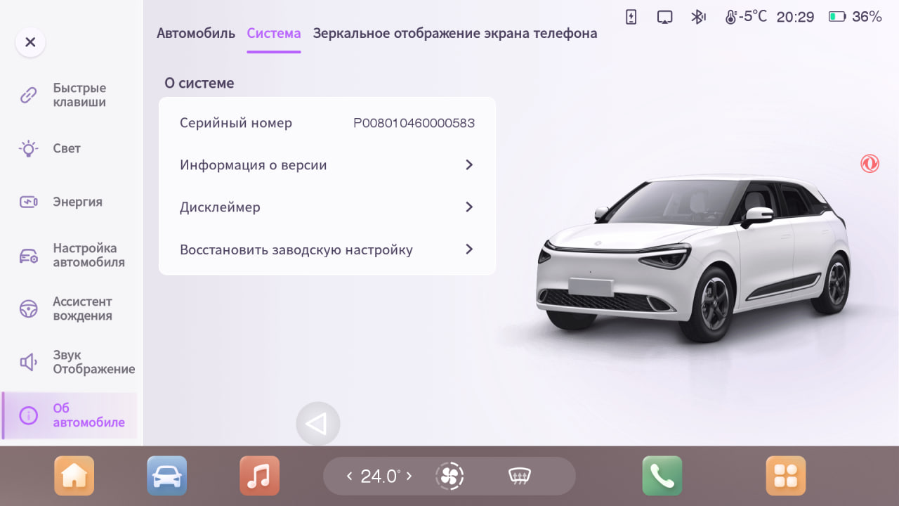2. Перейдите в раздел “Об автомобиле” > “Система”
