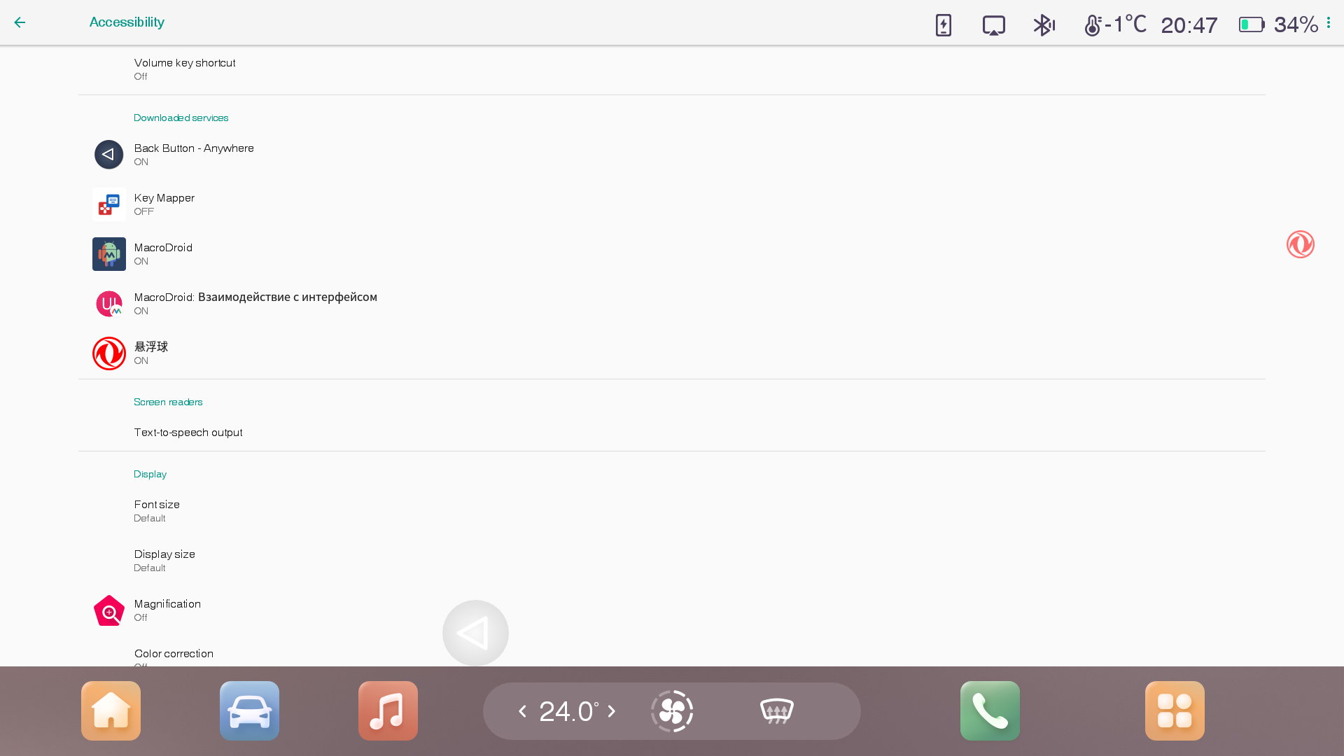 После того, как вы сделаете первичную настройку, иконка-шарик с лого Dongfeng появится на экране планшета и будет отображаться поверх всех приложений.